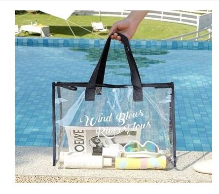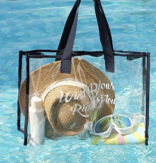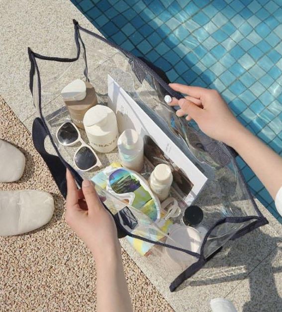 PVC소재는 방수가 가능한 소재로 야외활동이나 수영장등에서 사용하기 적합하며 내부가 비치는 소재로