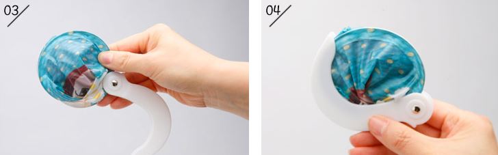 끝부분을 접어 원형으로 만들어 주고 손잡이 고리안으로 넣어주면 됩니다.